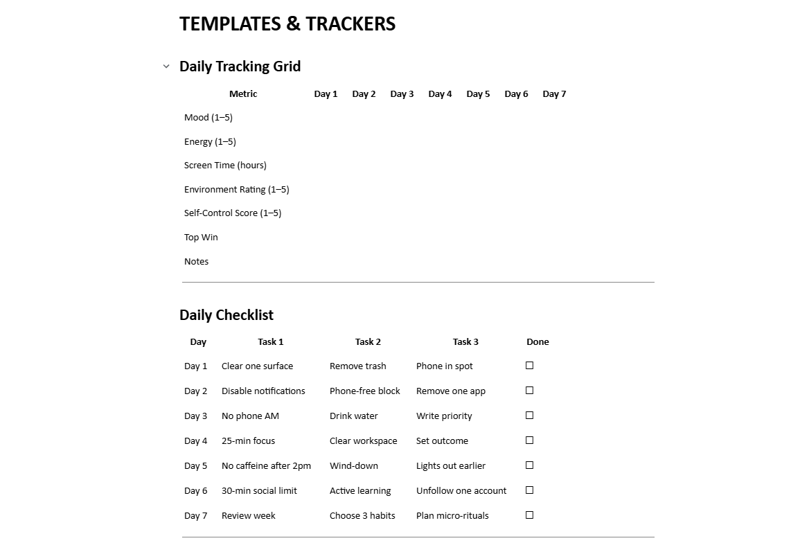 “The daily checklist made everything feel doable. Each tiny task felt like a win instead of a chore.” -